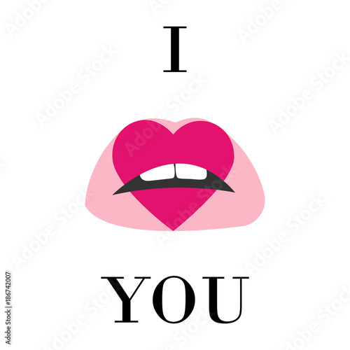 I Love You Illustration And Pink Lips With Print Of Heart Isolated