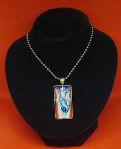 Puerto Rico Flag With Prayer Hands Glass Pendant Necklace Bandera