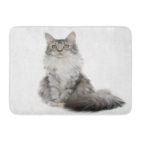 Grey Maine Coon Cat Against White Background Stock Photo Picture