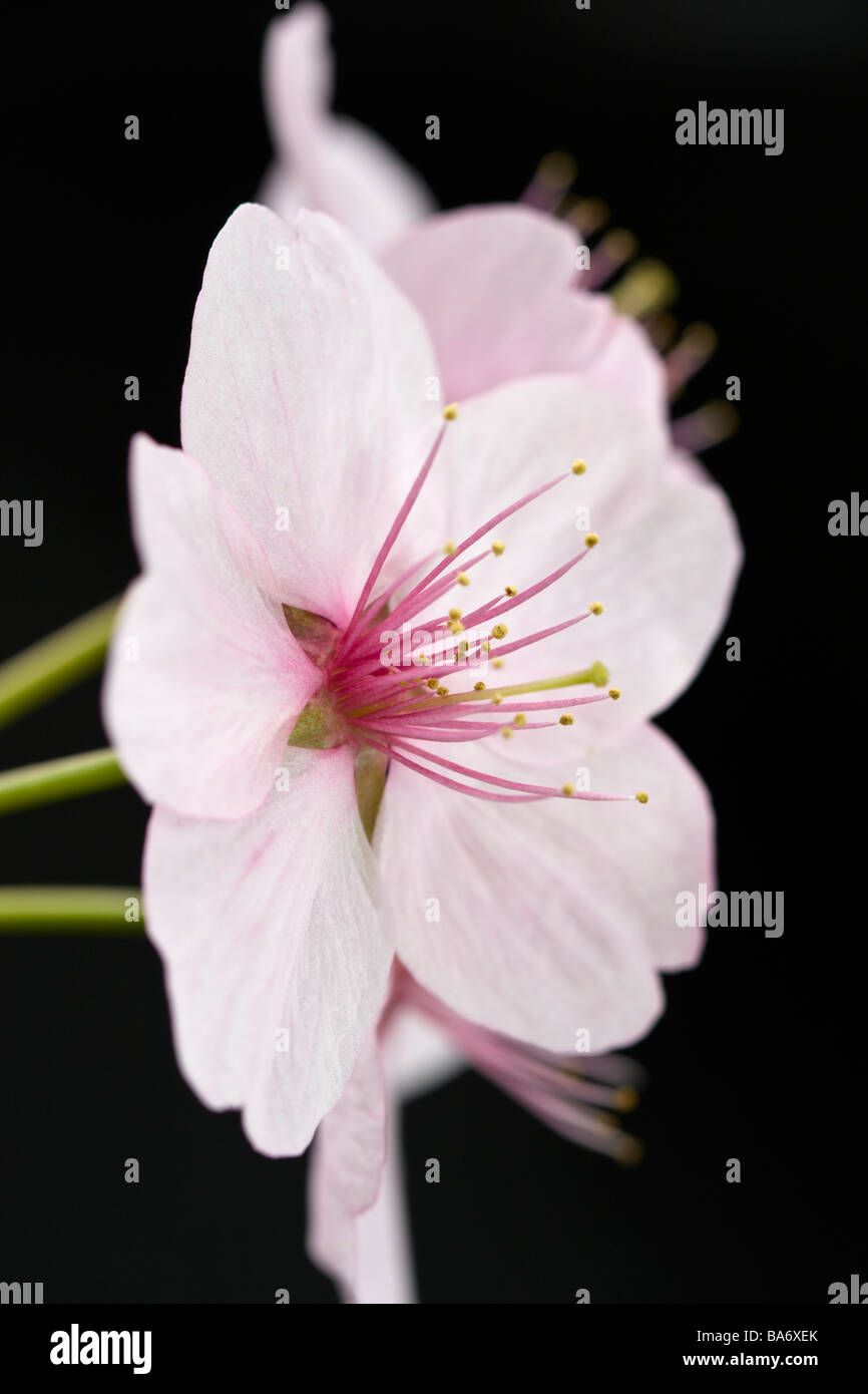Pink Cherry Blossom Flowers On A Black Background Stock Photo