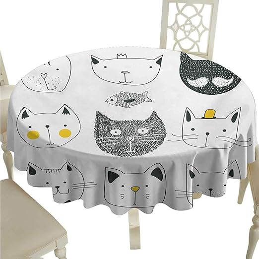 Amazon Com Hinxinv White Round Tablecloth Cat Stylish Cats With
