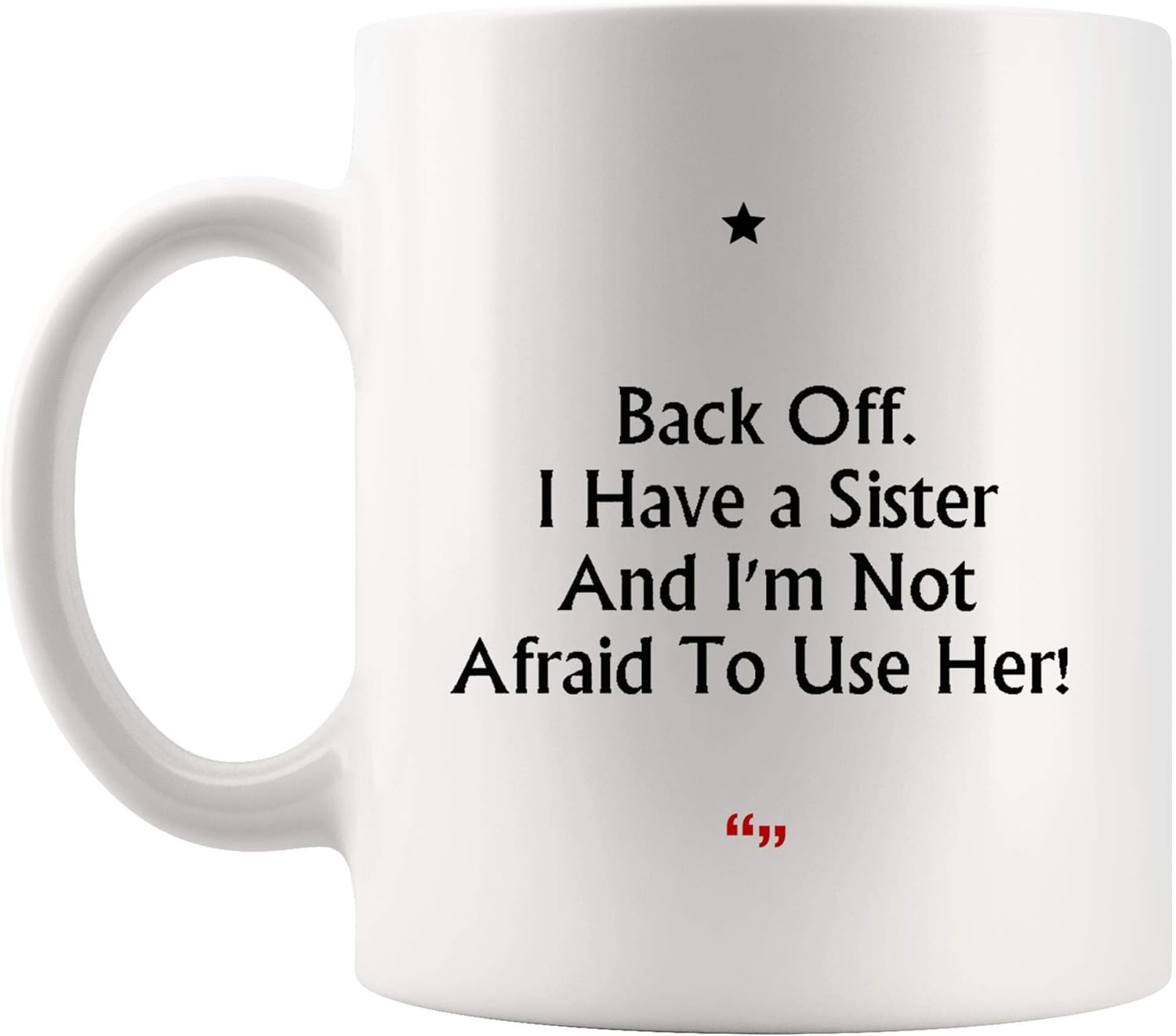 Amazon Com Back Off Sister Not Afraid Use Brother Mug Worlds