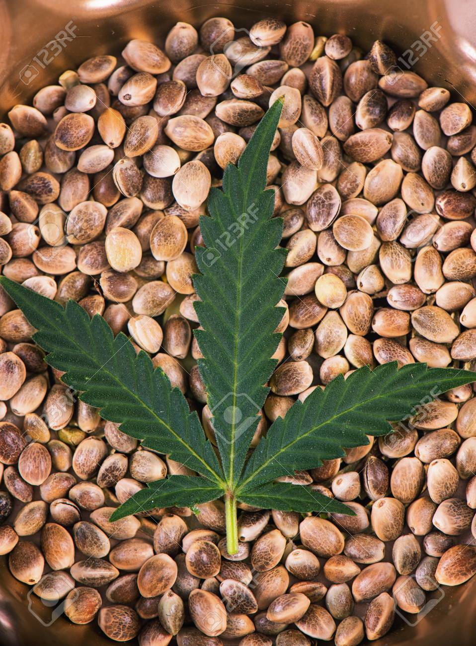 Macro Detail Of Marijuana Seeds And Tiny Leaf Over White
