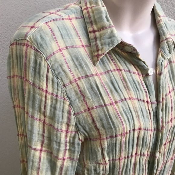 Cp Shades Tops Flannel Button Down Shirt Lemon Metallic Poshmark