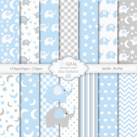 Blue Elephants Baby Boy Digital Paper Set Two Clipart Etsy